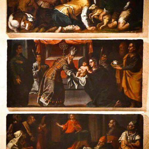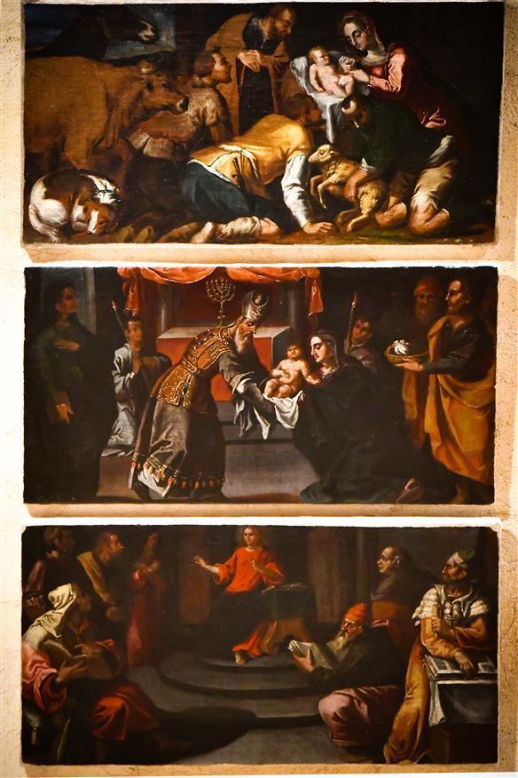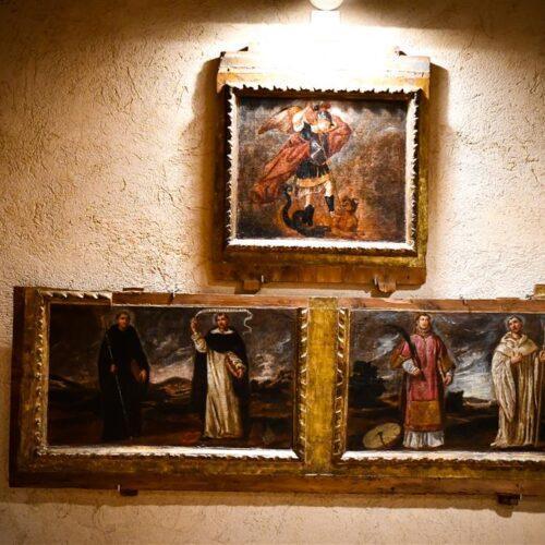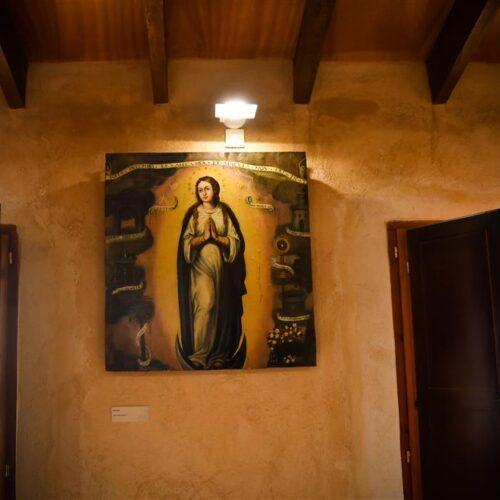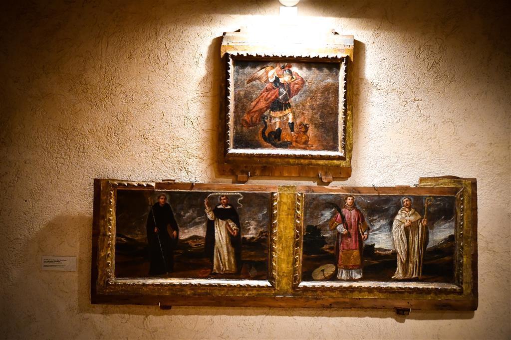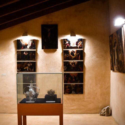 La primera planta es destina a l’exposició de quadres que posseïa la parròquia, però que no estaven destinats al culte, destacant entre altres, La crucifixió de Sant Pere i La Immaculada, a més d’una vitrina on s’exposen plats per a l’extremunció. També trobarem diversos gravats, destacant dos de la Mare de Déu de Montesa de Joaquim Ballester. En els murs de l’avantsala pengen set retrats dels membres de l’orde de Montesa dels segles XVIII i XIX.